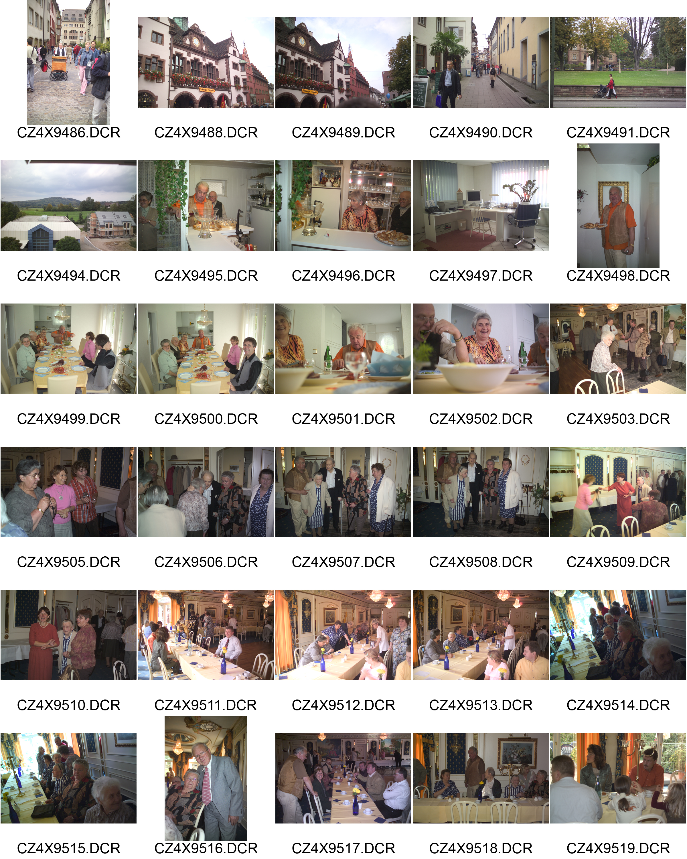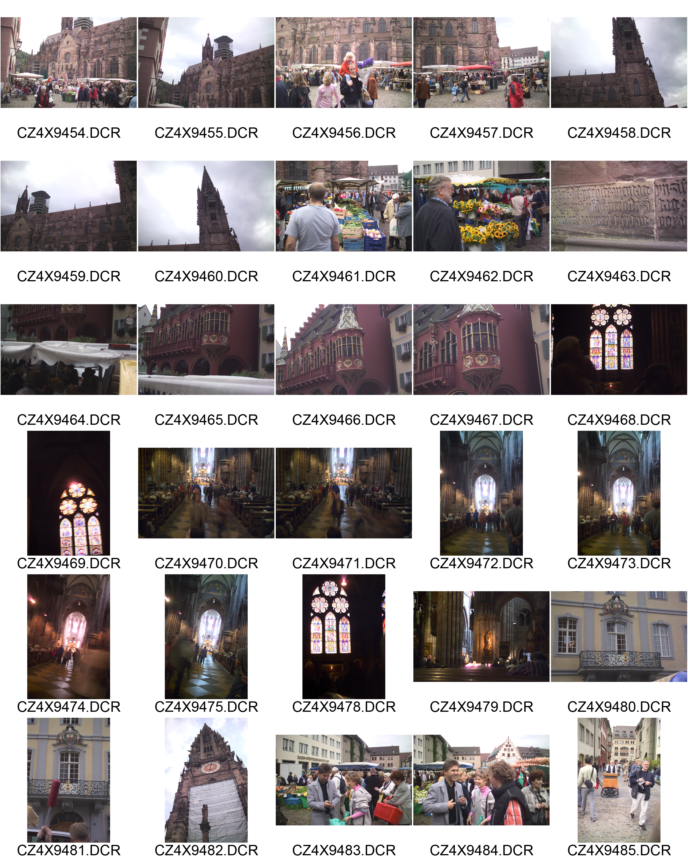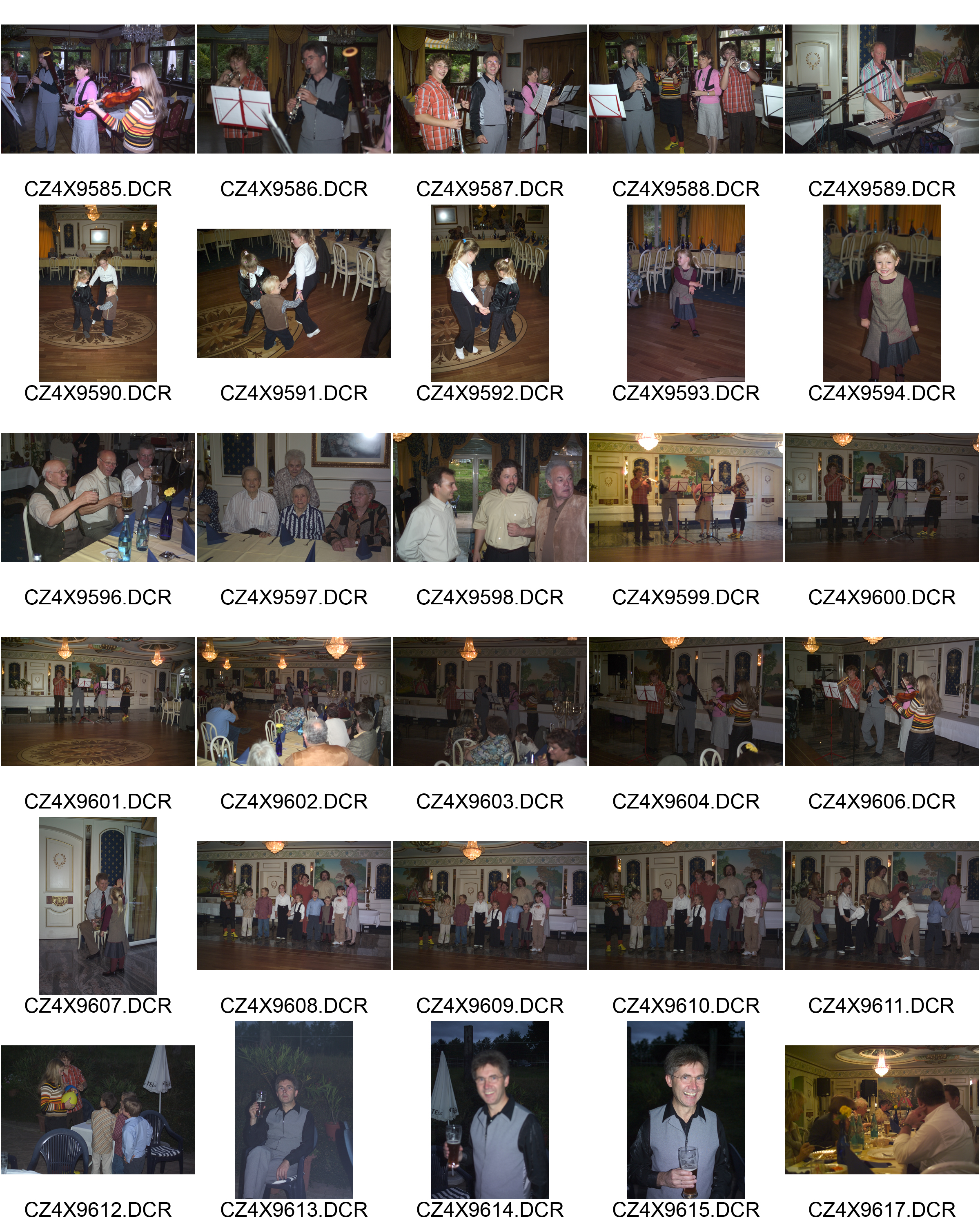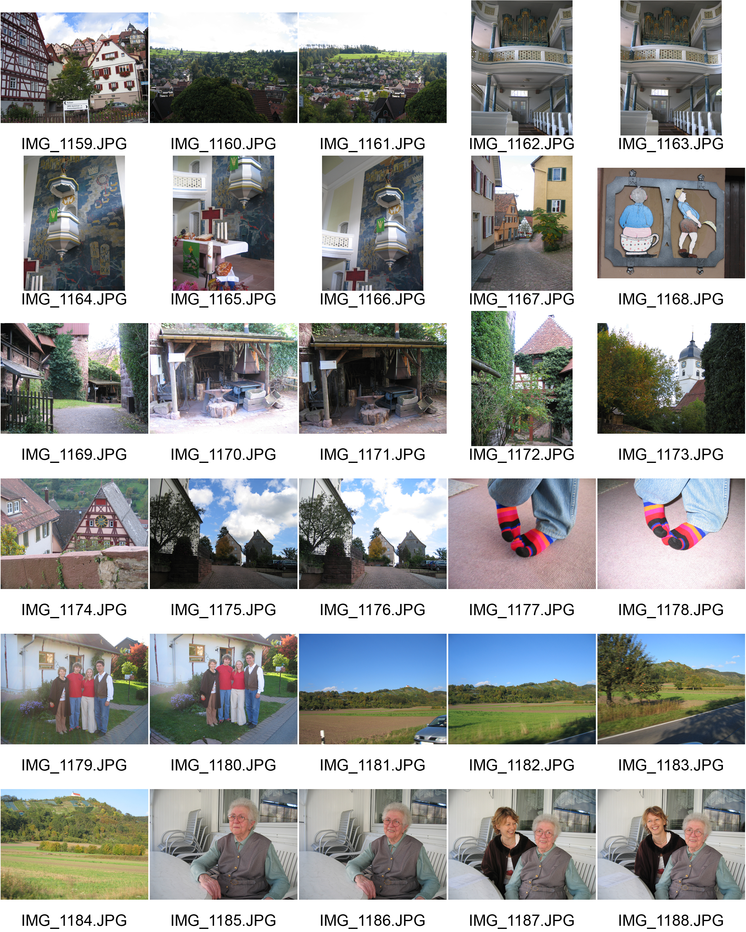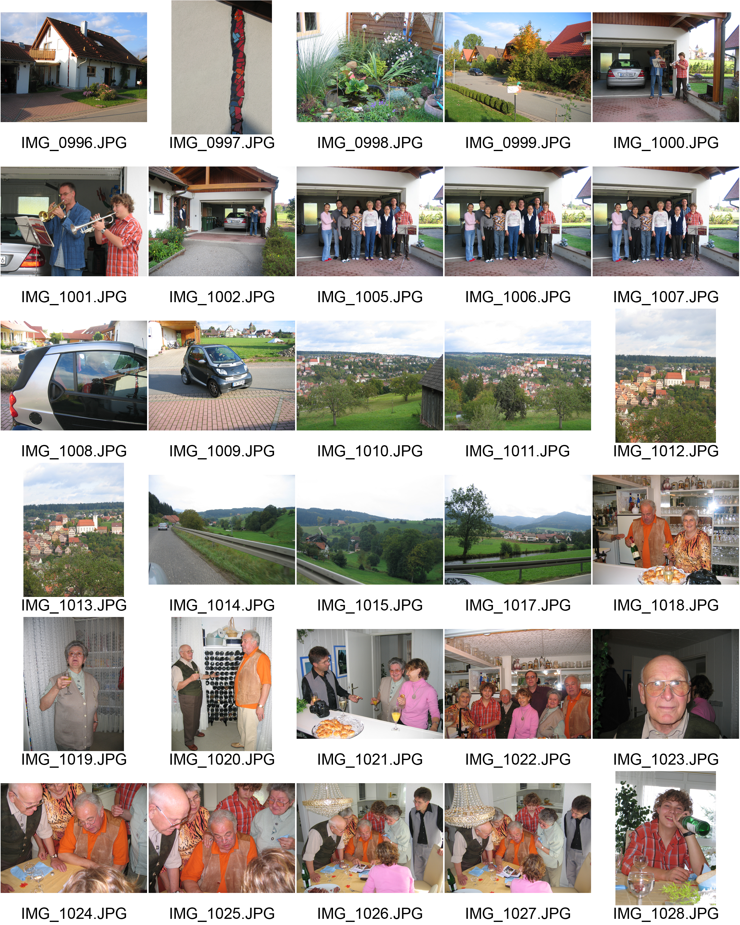 Below are links to three web based pages with all the photos I took trhoughout my four days in Germany, as well as those contributed by other family members. Also there are links to contact sheets. These are all unedited photos. Exposure and color have not been corrected yet. By each photo in the web based photos and also under each photo in the contact pages is a photo number. If you would like a high resoultion copy of any of the photos, I can copy them to disk and mail them to you or email them to you. Please let me know. If you have additional pictures to share, please email me or send me a disc.