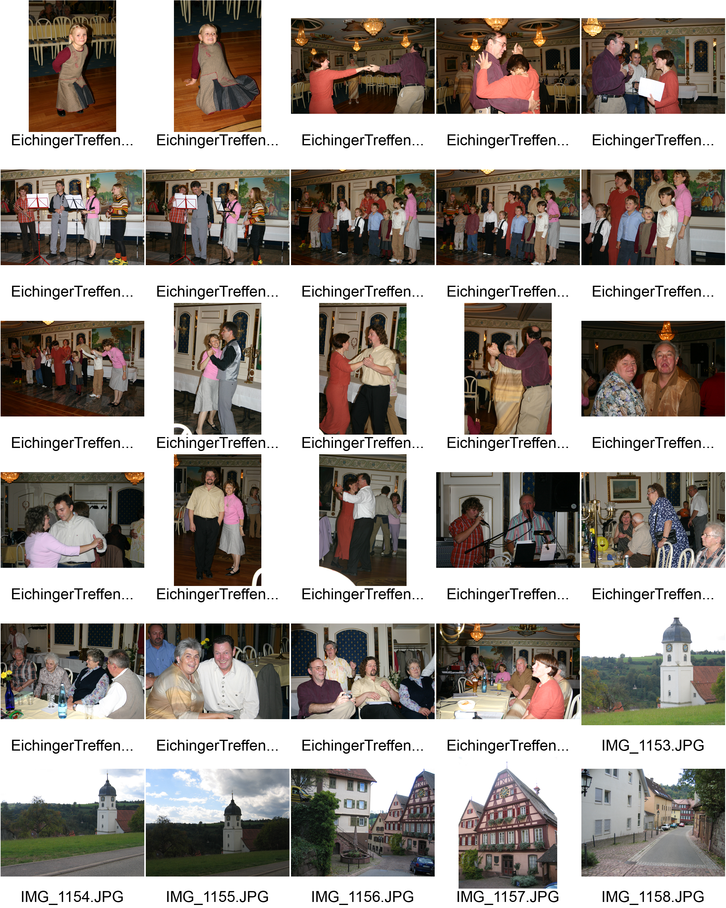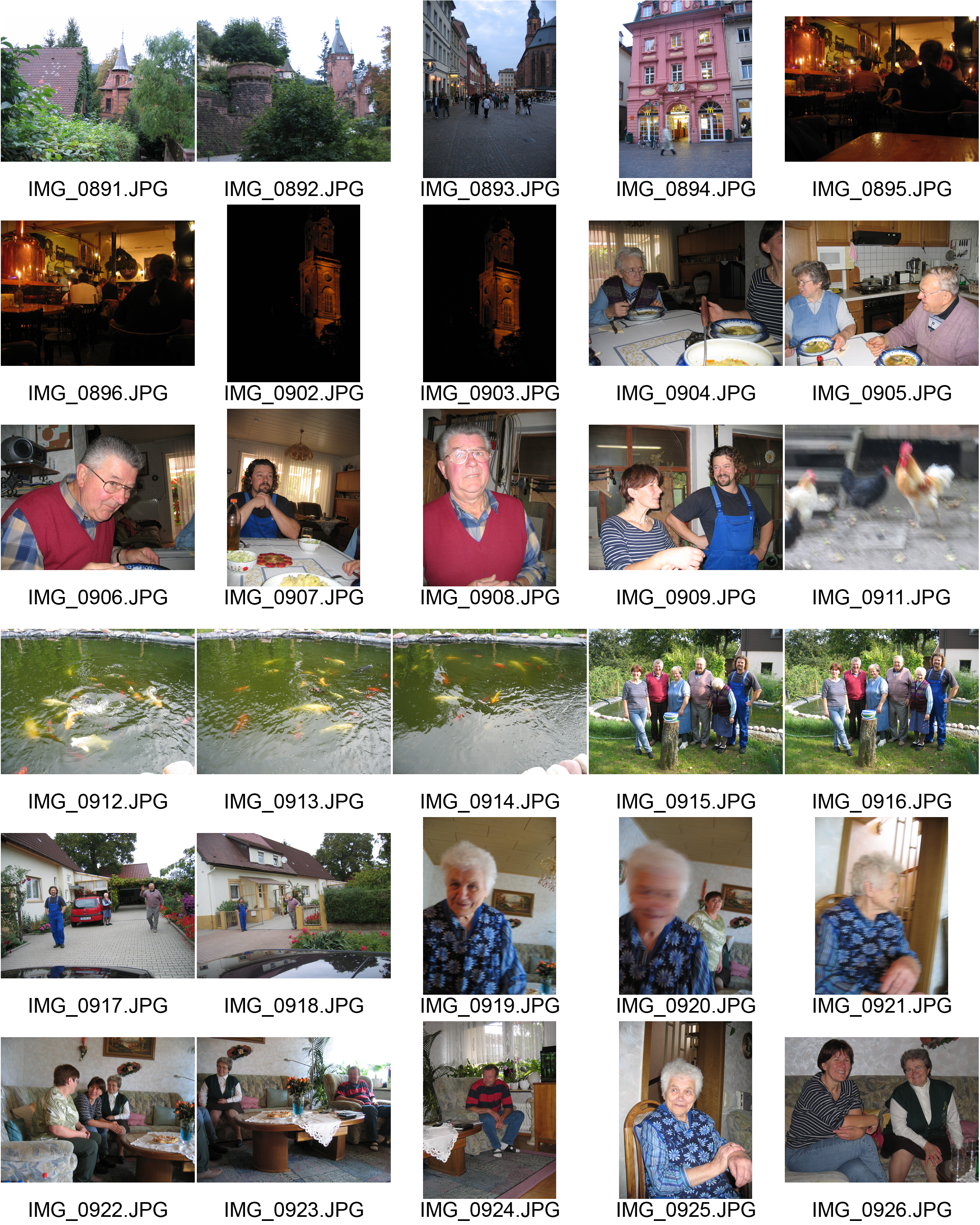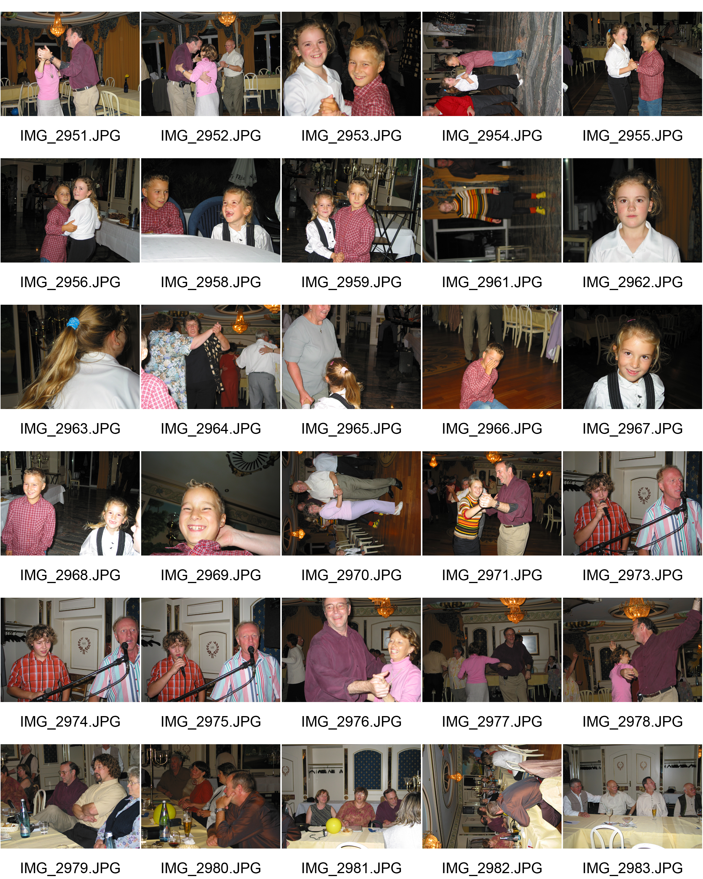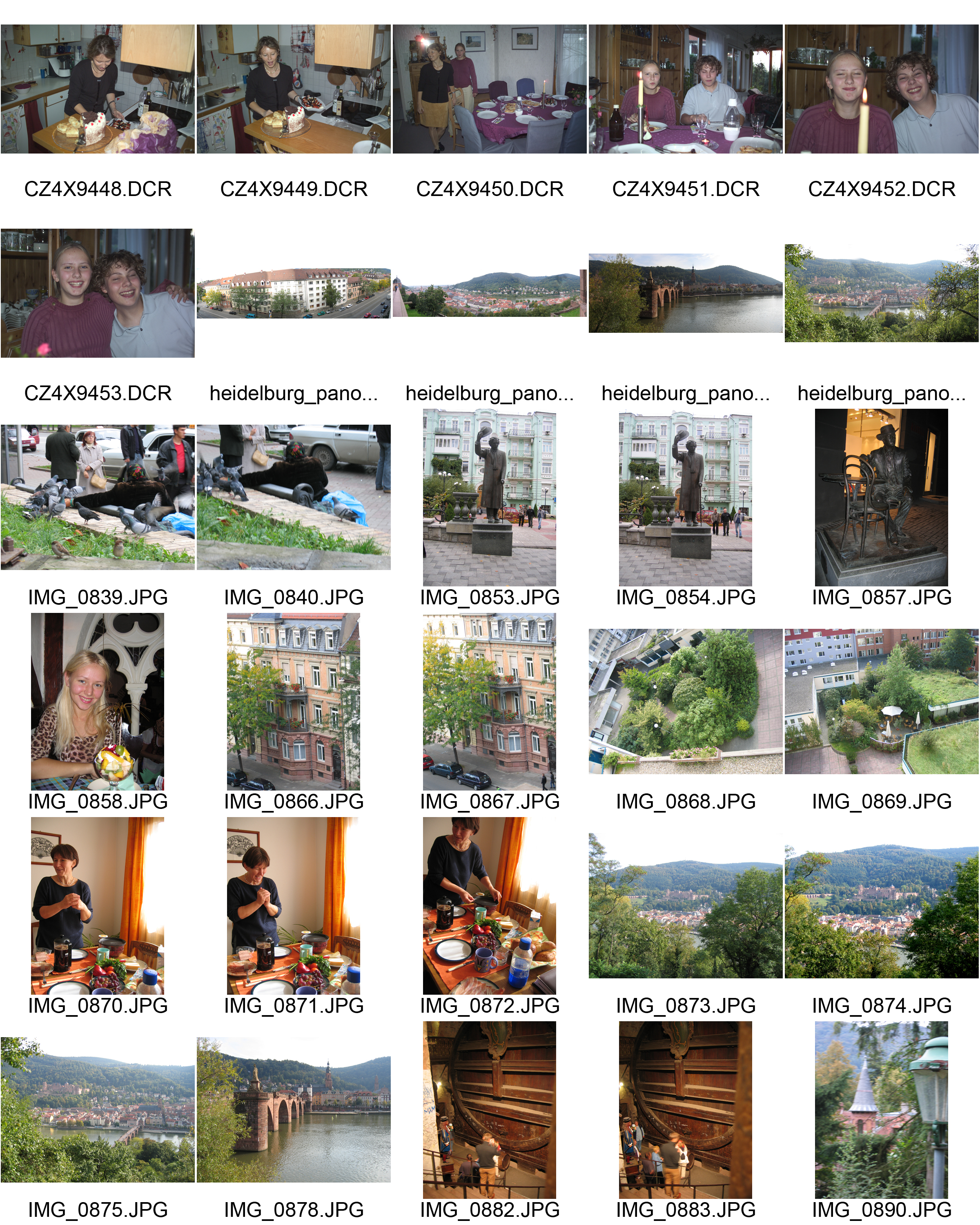Below are links to three web based pages with all the photos I took trhoughout my four days in Germany, as well as those contributed by other family members. Also there are links to contact sheets. These are all unedited photos. Exposure and color have not been corrected yet. By each photo in the web based photos and also under each photo in the contact pages is a photo number. If you would like a high resoultion copy of any of the photos, I can copy them to disk and mail them to you or email them to you. Please let me know. If you have additional pictures to share, please email me or send me a disc.
